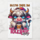 A funny, sarcastic, and colourful design showcases an adorable highland cow clutching a takeout coffee cup. The cup features a coffee bean and a black lid. The cow, with its big blue eyes and black-and-white fur, adds charm to the design. The vibrant text reads, "Coffee helps me tolerate idiots." This design is available on various products, making it a perfect gift for coffee lovers.