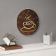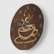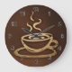 We had just purchased a condo and were thinking about a theme for the kitchen. The perfect theme was coffee as the kitchen color is brown. The clock is on the wall surrounded by three other pictures of coffee cups. We didn't customize the clock. It was beautiful as it was.