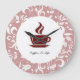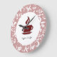Kitchen wall clocks with image of a fresh cup of coffee on the clock face along with the words "coffee is life" and pretty fooral damask pattern in this household wall decor clock design for your kitchen, bathroom, or any room in your house you want to add some food and drink related decoration.