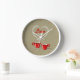 Custom wall clock for coffee lovers with vector illustration of two heart-shaped steaming red cups of coffee and personalised text. A great present for the kitchen of a new couple or for a romantic theme café, restaurant or pub.