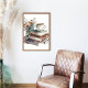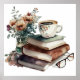 Coffee Boho Floral Watercolor poster art in earth tone shades of green and brown, with an elegant, vintage vibe. Your coffee-loving friend - or perhaps you - will love the calming effect of the stack of classic books, cup of brewed coffee, vase of flowers, and of course, the cute glasses that most of us will use while reading! Frame it for a cohesive and beautiful piece of wall art.
