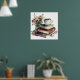Coffee Lover Boho Floral Watercolor Green Brown Poster
