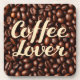 A regal proclamation of coffee love. The phrase "Coffee Lover" is etched in bold, royal script, reminiscent of ancient inscriptions. The letters stand out against a backdrop of rich, dark coffee beans, creating a visually stunning and aromatic composition. The image evokes a sense of luxury, indulgence, and the deep appreciation for the simple pleasure of a cup of coffee.
