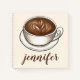 Spiral notebook design features an original marker illustration of a ceramic coffee latte, printed on a tan background. Just personalise with the name of your favourite coffee lover.
