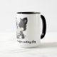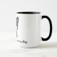 Cute drawing of a black white dog ( border collie, Siberia husky, Alaskan malamute style) with a cup of coffee - coffee lover, dog lover, - great gift idea