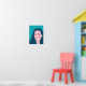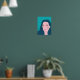 Coffee lover poster with a flat vector illustration in bright colors depicting a weird girl with orange eyes and blue hair who has a caffeine formula tattoo on her cheek.