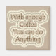 Refrigerator magnet reminding you that "With enough Coffee you can do anything. Soft, coffee browns and creams.
