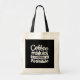 Coffee themed tote bag with white text reads Coffee Makes Everything Possible! If you are a coffee addict or just someone who can't start the day without a cup of coffee you'll love this coffee saying tote bag!