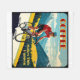 You can ride your bike over high mountains because of coffee and coffee alone. This great design shows a cyclist in the mountains in the style of a retro vintage travel poster.