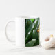 Coffee mug shown with a photo print of the tropical flower Bird of Paradise.