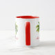 Coffee mug is shown in white with red inside, with a holiday palm trees print. Text says Feliz Navidad.