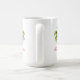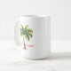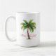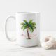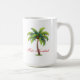 Coffee mug is shown in white with a holiday palm trees print. Text says Feliz Navidad.