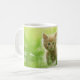 This ceramic coffee mug is shown with a photo print of a cute kitten.