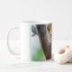 This ceramic coffee mug is shown with a photo print of a beautiful leopard cat.