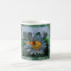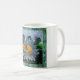This coffee mug celebrates spring with a picture of a bee and flower.