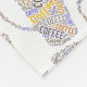 Word art design features silhouette of coffee mug filled with the word "coffee" in a variety of colours and fonts