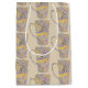Word art design features silhouette of coffee mug filled with the word "coffee" in a variety of colours and fonts. Repeating offset pattern on tan background