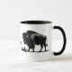 This ceramic coffee mug is shown with a art print of a buffalo with Yellowstone text.