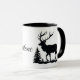 This ceramic coffee mug is shown with a art print of a elk with Yellowstone text.