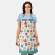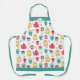 This cute apron features a blue, gold, pink, and white pattern of tea or coffee pots, cups, honey and jam jars, as well as other boho style kitchen images. At the top and bottom is a matching solid teal blue border. Your monogram is in matching teal on a circle banner lined in gold. Pretty, and personalised just for her!