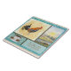 Delightful Coffee art tile either for a trivet, wall hanging or other uses. Original Art by Audrey Jeanne Roberts has a beautiful hand painted watercolor background of creamy tan and aqua blue. There is a border of chocolate brown and blue checks dividing four designs in a collage format. One has a rooster, another a sunrise watercolor the third is a coffee cup with chocolate brown swirl design and the original saying by Audrey Jeanne Roberts, "Without coffee, 'Good morning' is an oxymoron!”