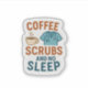 Coffe, Scrubs and No Sleep, this sticker describes the life of a nurse.