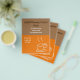 A flyer suitable for a coffee shop or cafe shop, or grand opening featuring cute and colourful simple design coffee cup cafe coffee illustration against a brown and orange background.Cute, colourful and modern. All text is fully customisable to suit your needs.