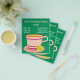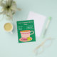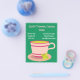 A flyer suitable for a coffee shop or cafe shop, or grand opening featuring cute and colourful retro tea cups cafe coffee illustration against a mint background.Cute, colourful and retro. All text is fully customisable to suit your needs.