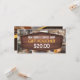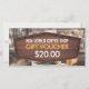 Imagine the irresistible aroma of freshly brewed coffee blending with the sweet warmth of freshly baked pastries, inviting customers to linger. If your coffee shop exudes that cosy, welcoming atmosphere, why not share it with the world through a thoughtfully designed gift voucher? An attractive gift certificate for coffee shops to encourage more customers to come through their doors with a design that has rustic wood touches, a faded out coffee shop background, all in rich brown tones. On the front, you set your gift voucher price and on the back your coffee store, location, phone number, email and website, along with the terms and conditions of your offer. Designed to capture the essence of your café, this gift certificate will not only elevate your professional image but also entice clients to experience the warmth and flavour you offer.