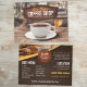 Imagine the irresistible aroma of freshly brewed coffee blending with the sweet warmth of freshly baked pastries, inviting customers to linger. If your coffee shop exudes that cosy, welcoming atmosphere, why not share it with the world through a thoughtfully designed business card? An attractive postcard for coffee shops to advertise their products, the design has rustic wood touches, a faded out coffee shop background, all in rich brown tones. On the back is an opportunity to list your menu such as coffee, croissants, sandwiches, smoothies and more, as well as a brief paragraph about your coffee store, location, phone number, email and website. The top has a badge for you to advertise a special or one of your bestselling coffees. Designed to capture the essence of your café, this postcard will not only elevate your professional image but also entice clients to experience the warmth and flavour you offer.