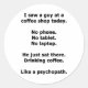 For the sarcasm lover in all of us. Check out this witty “I saw a guy at a coffee shop today. No phone. No tablet. No laptop. He just sat there. Drinking coffee. Like a psychopath.” design on apparel and gifts.