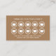 Coffee shop loyalty / punch card template for cafe. Custom company reward card design for cafe, restaurant, diner and other places. Customisable beige and brown colours. Space for 10 stamps / punch holes. Offer return clients and customers a discount or free order like a cup of coffee or other drinks. Two sided print with silhouette of cup and saucer.