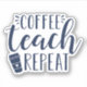 Know a teacher who runs on coffee? This funny sticker for coffee lovers and awesome teachers features the quote "coffee teach repeat" in navy blue hand lettered typography with a to-go coffee cup illustration adorned with a heart.