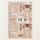 The cover on this notebook planner features images of brim full coffee cups along with a variety of coffee terms in all kinds of typography. One side has a brown and tan bordered banner with your monogram and name in dark brown. Both the front and back have the same design, but the banner and monogram appear only on the front.