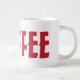 These speciality mugs, this one being bone China, feature the word COFFEE in bold red lettering with a high angle image of a cup of black coffee in place of the letter 'O'. These mugs make a strong statement ideal for coffee lovers for that much needed caffeine infusion. It is available in multiple styles and sizes to suit your taste.