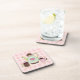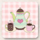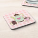 Pink and white chequered coasters, with pretty graphics of two cups of coffee and a colourful coffee pot. Great coaster for any room of the house. Customise to add any text you want. Great gift idea.
