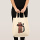 The printing came out very well, better than I had anticipated. The natural color fabric is sturdy with strong seams and comfortable handles. This tote fits easily over my shoulder. As it is filled, the bottom flattens out--very cool! I would buy this product again. This grocery tote holds a lot of groceries! The image quality was very good. The colors were a little darker than I had expected. The darkness may have been due to printing on a natural color fabric rather than on white. The cat design is attractively centered on the tote. The spirit of the design is very lively, just as it appears on the Zazzle website.