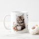 Adorable illustrations of cute kittens with a coffee cup accented with flowers, the text reads: "Mornings are for having coffee with my cat" and this can be changed to anything you like - Each side of the mug has a different kitten illustration - we offer 16 different mugs so you can mix and match creating a cute coordinated set as a lovely gift for a housewarming, Christmas or new kitten in the family.
