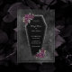 Coffin Black Grey Roses Sparkle Halloween Wedding Invitation