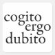 I think therefore I doubt. Minimalist design for the polyglot questioners and contrarians. Change the background colour to match your style.