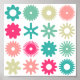 An attractive square arrangement of 16 different style cog wheels in a pallet of attractive colours.