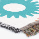 An attractive pattern made up of a repeating square arrangement of 16 different style cog wheels in a pallet of attractive colours.