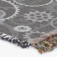 A quality printed throw has its advantages. This is a much finer weave throw than its loopier cousins, and though lighter, it is worth the investment for custom room accessorizing. The back is much prettier than the typical brown, and the fringe on the long sides very vivid, the selvage nicely done. Before photographing, I washed the throw in cold water, delicate, with a thicker woven throw the same size. On tumble dry low, this throw was dry in half the time as the other. This is a very practical quality if you use throws for furniture covers or to wrap up in frequently. The sleekness of the fabric makes it a great layer for accenting or protecting without the feeling of sitting on too much stuff. Perfect for napping or when you feel a light chill coming on. The color printing is beautiful and on this fabric, matched the design and color of my Photoshop image. This is an advantage for blending room fabrics and colors. The fringe on the short sides prints the colors from the design image and therefore varies from the side fringe. I streaked a white fractal line through the plaid pattern to give the illusion of weaving. This printed as crisp as an illusory thread, and put some white in the short side fringe, showing another advantage of print vs loomed- for artistic purposes, line lines, detail, and color integrity can be planned and preserved. My loomed throws have color limitations and more of a needlepoint texture. Print throws reproduce an exact image. The throw felt a little stiff straight out of the package, but this went away in the first delicate wash. Of course I searched the wash water for ink or bleeding and there was none.