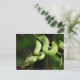 Photograph of a bright green tree snake coiled around a branch in the jungle