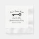 Coined cocktail napkins for housewarming party celebration. Elegant black and white typography design with old vintage skeleton key. Great for celebrations with friends, family, buyers, sellers etc. Add your own personalised text to celebrate your new home. Perfect for gathering, BBQ or dinner at the property or house. Also handy for real estate and open house events. Custom colour disposable party supplies.