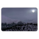 The view from my mountainside cabin in the Idaho panhandle; near the town of Bonners Ferry. Moonlight, ever so slightly obscured by clouds, reflects off the snow-covered mountains. Conifers cover the landscape. Sasquatch lives here.