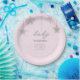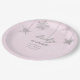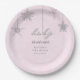 A modern, elegant and chic baby girl shower party personalised paper plate featuring a textured pink background, the word BABY and hand-drawn snowflakes covered in rhinestones (not real rhinestones, this is a digital effect), modern typography. A chic, timeless design for a future mummy who is celebrating her baby shower in the winter months, November, December or January or even beyond, as long as there is snow!