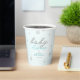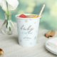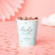 A simple, modern, elegant and chic gender neutral baby shower party personalised paper cup featuring a textured, winter white background, the word BABY covered in rhinestones (not real rhinestones, this is a digital effect) and in modern calligraphy script, modern typography and a few rhinestones covered snowflakes. A chic, timeless design for a future mummy who is celebrating her baby shower in the winter months, November, December or January or even beyond, as long as there is snow!