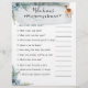Cold Outside Winter Animals Baby Shower Who knows Flyer Game