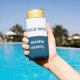 Cold Sips. Warm Hands. Funny Quote. Blue and White Seltzer Can Cooler. Add your favourite quote. Enjoy!